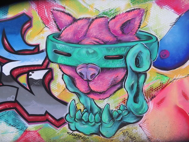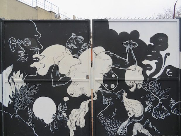 Animal métamorphosé sur le mur à fresques de la rue d’Aubervilliers, près du jardin d’Eole, 18e.