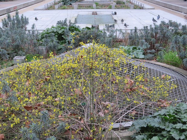 Oculus recouvert de jasmin d’hiver dans le jardin au dessus du canal st Martin, 11e.