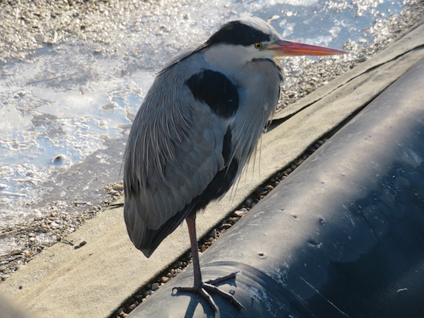 Héron cendré frigorifié au parc Martin Luther King, 17e.