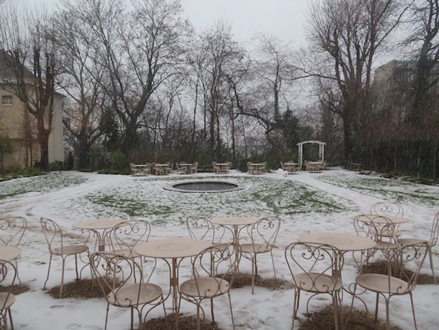 Neige sur le jardin du musée du quartier de Montmartre, 18e.