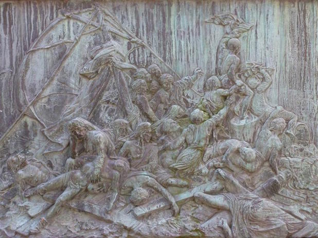 Réplique du tableau » le radeau de la Méduse « , sur la tombe de Géricault, au cimetière du Père Lachaise, 20e.
