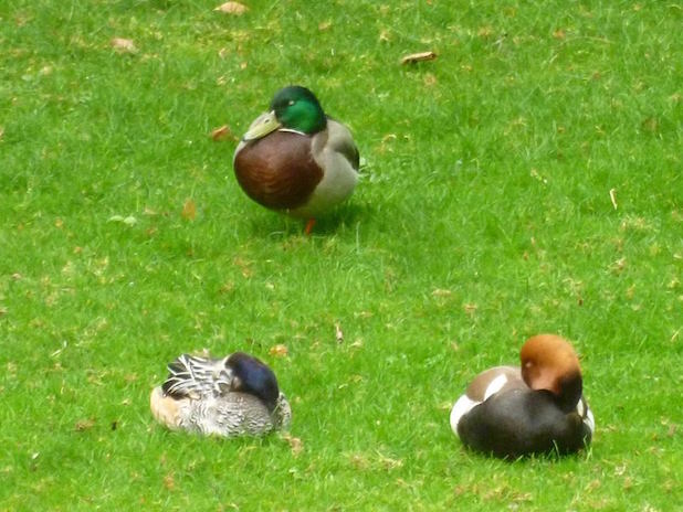 Trio de canards en pleine sieste au square des Batignolles, 17e.