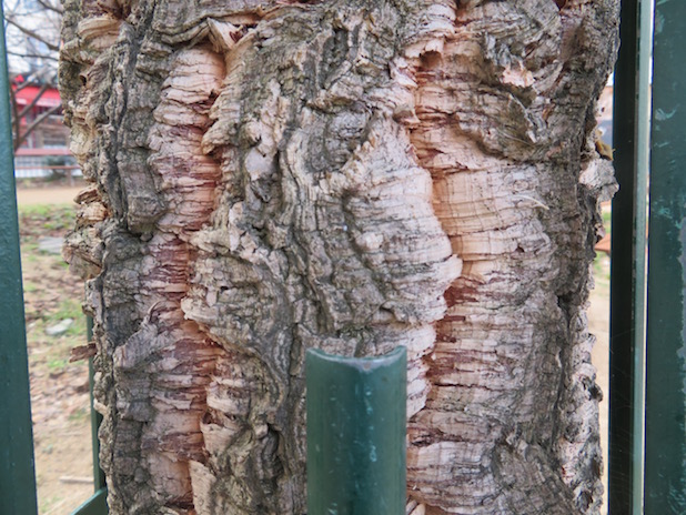 Ecorce de chêne liège dans le jardin Alain Bashung, 18e.