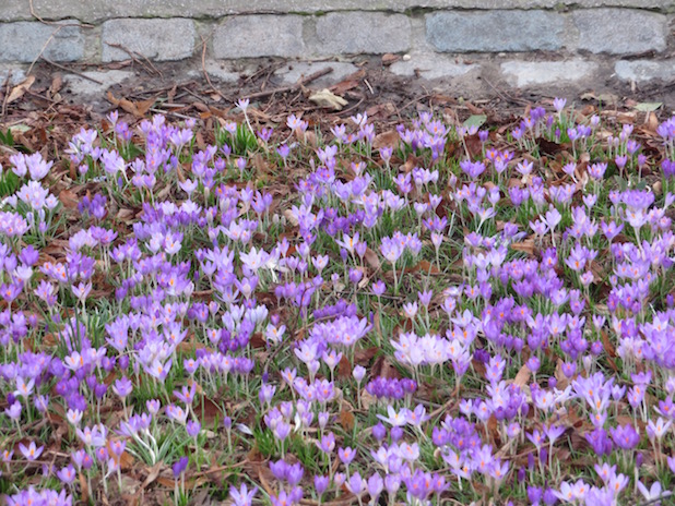 Talus tapissé de Crocus au jardin de Belleville, 20e.