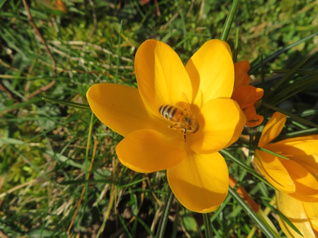 Abeille domestique en pleine activité au jardin d’Eole, 18e.