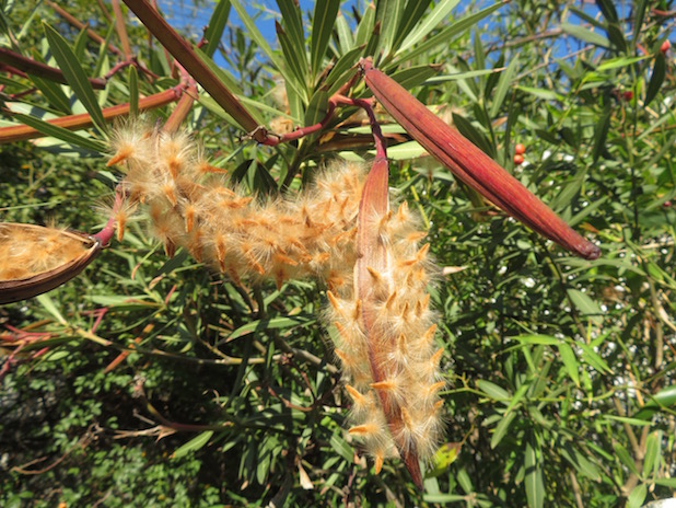 Fruit de laurier rose libérant ses graines, près du château ouvrier dans le quartier de Plaisance, 14e.