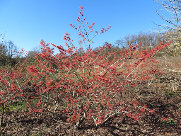 Hammamelis mollis à l’arboretum de la Vallée aux Loups, 92.