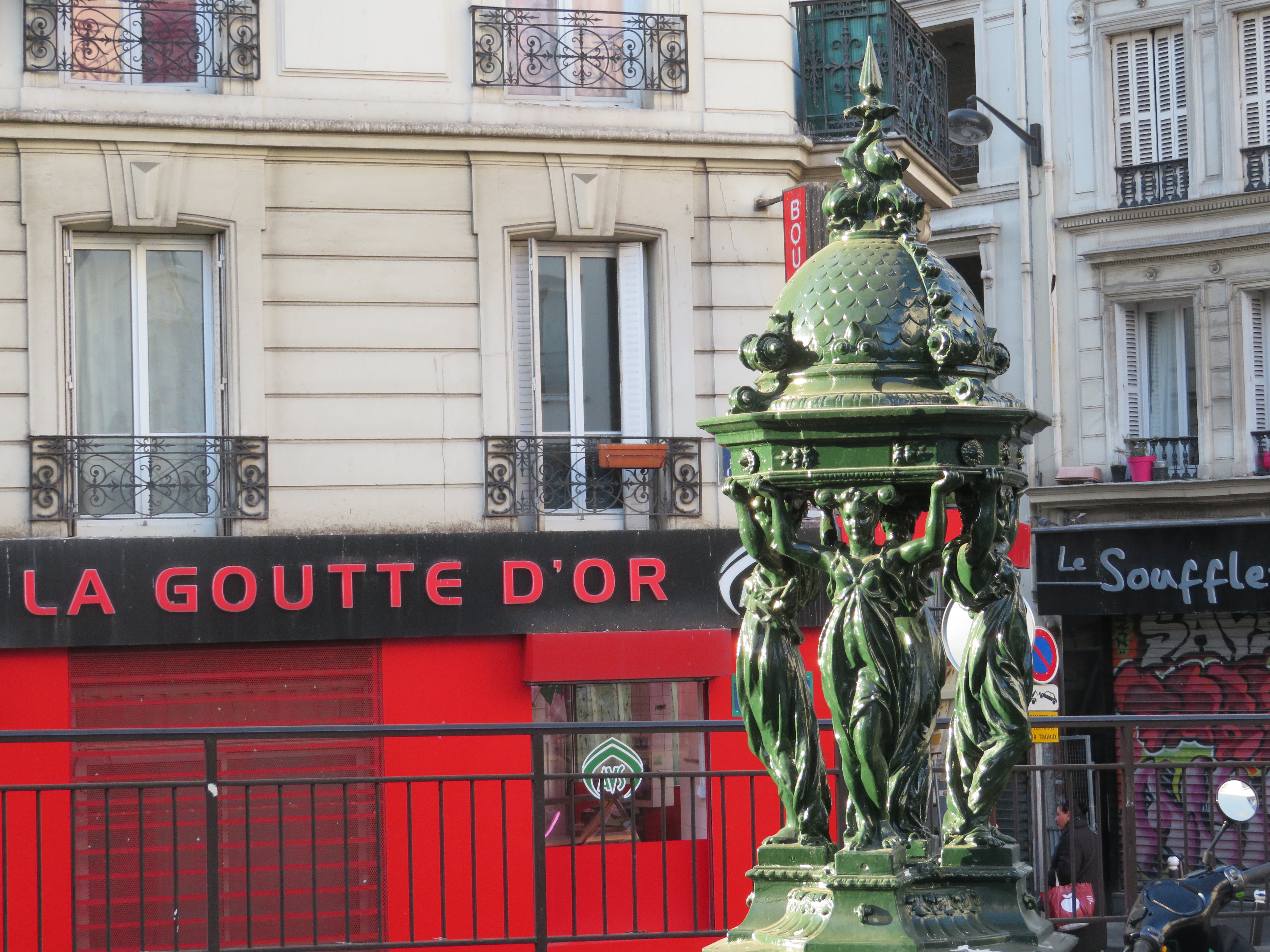 Fontaine Wallace dans la rue de la Goutte d’Or, 18e.