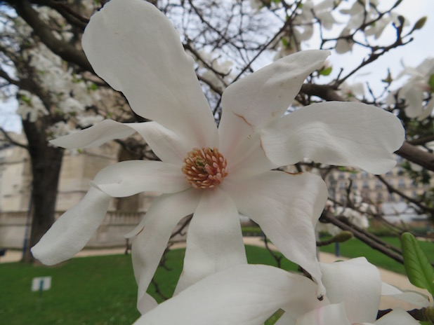 Magnolia kobus dans le square st Jacques, centre historique de Paris, 4e.