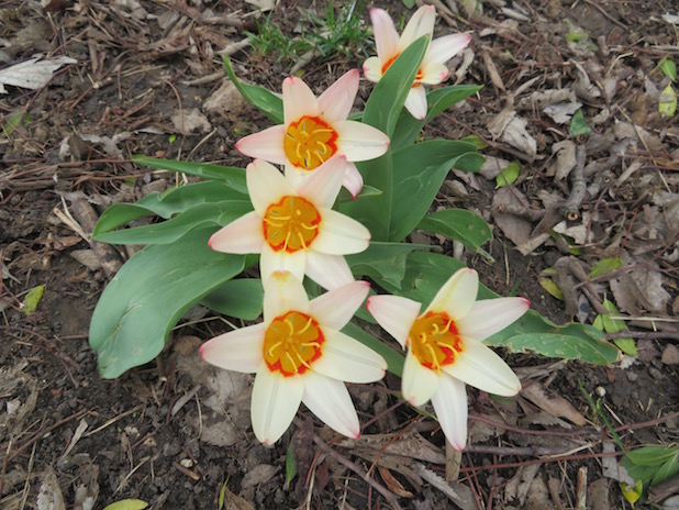 Jolies tulipes botaniques au parc des Buttes Chaumont, 19e.