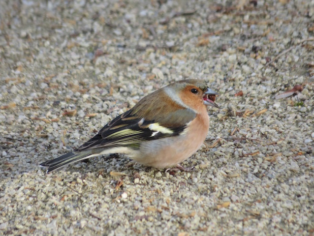 Repas d’un pinson des arbres mâle dans le jardin des Tuileries, 1er.