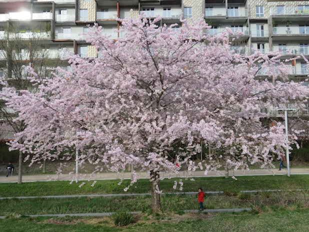 Jour tranquille sous les cerisiers au parc Martin Luther King, 17e.