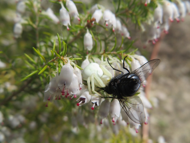 Mouche capturée par une araignée thomise, au Parc Floral, 12e.