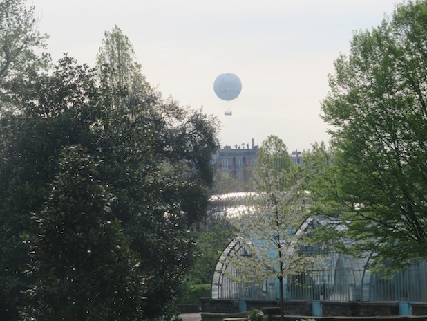 Ballon captif du parc André Citroën, 15e, depuis le jardin des serres d’Auteuil, 16e.