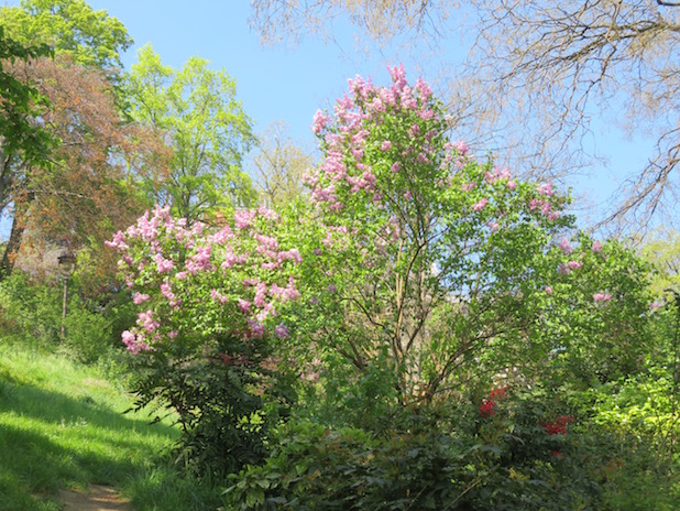 Lilas en fleurs au jardin Louise Michel de Montmartre, 18e.