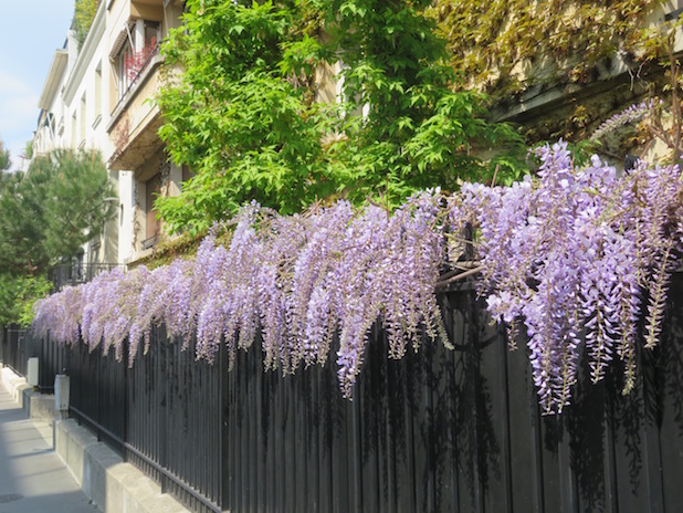 Glycine de Chine dans une rue entre métro Pont de Neuilly et parc de Bagatelle, 16e.