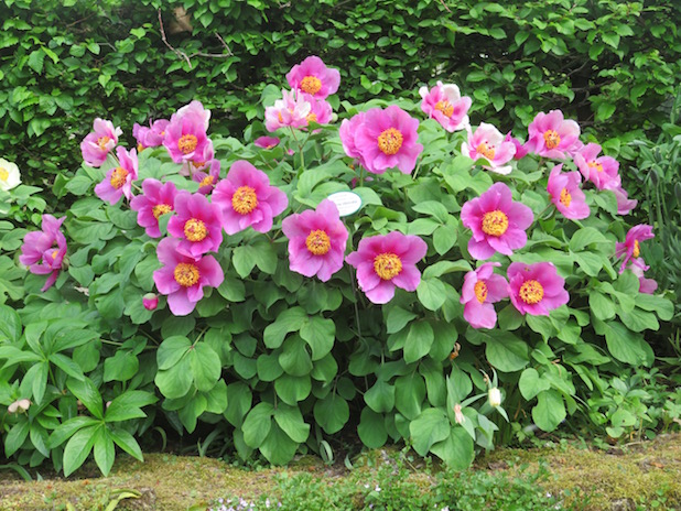 Pivoine japonaise, Paeonia obovata, au potager du parc de Bagatelle, 16e.