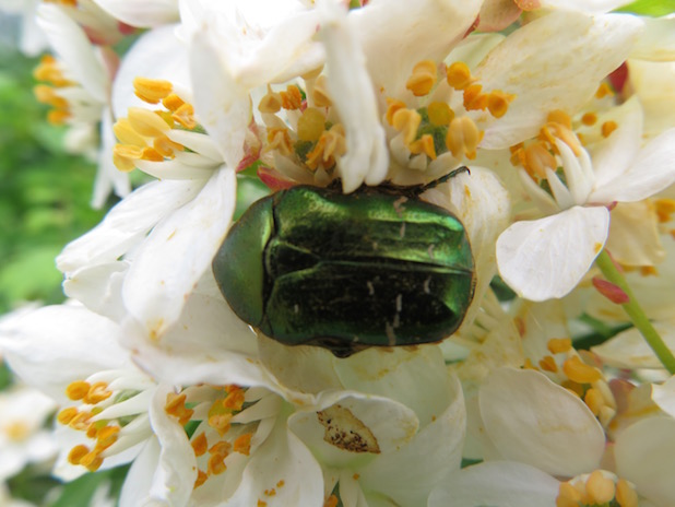 Cétoine dorée endormie dans un oranger du Mexique, au jardin Martin Luther King, 17e.