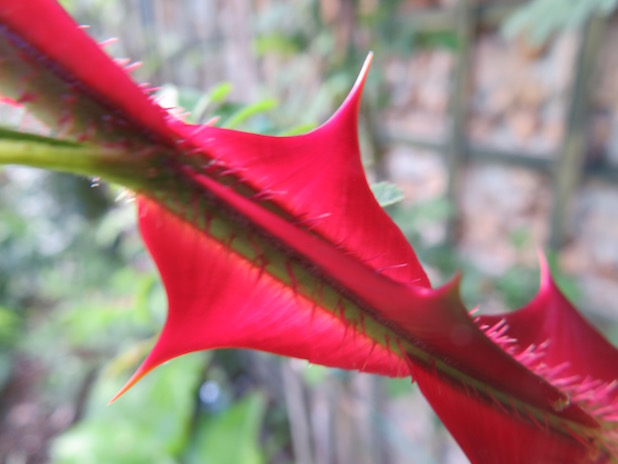 Aiguillons de Rosa cericea ‘ pteracantha ‘ au parc de Bagatelle, 16e.