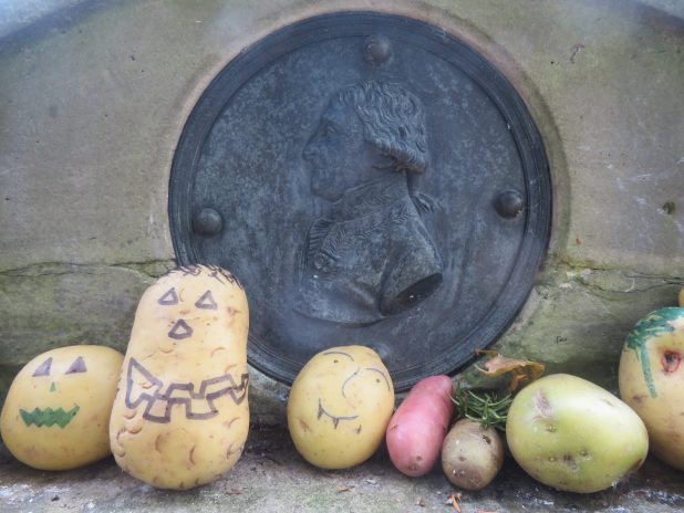Fleurissement original sur la tombe d’Antoine Parmentier, au cimetière du Père Lachaise, 20e.