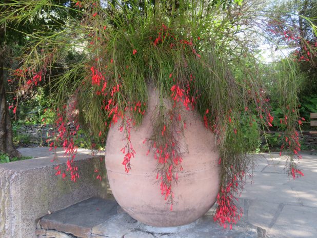 Lobelia laxiflora, affaissé dans le jardin de » Little Villette « , au parc de la Villette, 19e.