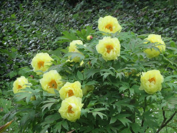 Pivoine arbustive jaune dans le jardin botanique d‘Issy les Moulineaux, 92.