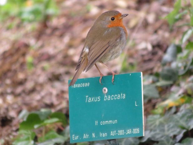 Rouge gorge amateur de botanique au jardin des serres d’Auteuil, 16e.