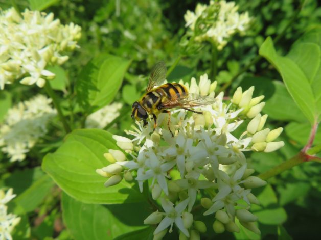 Joli syrphe sur un cornouiller sanguin, dans le bois de Vincennes, 12e.