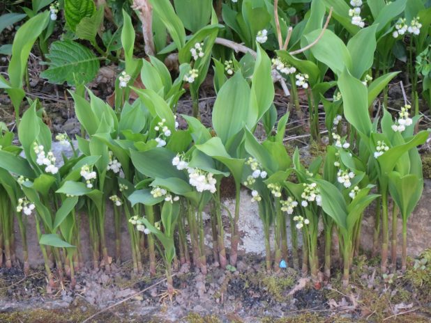Bonne fête du travail avec un muguet de mai ou lys de la Vallée aux Loups, 92