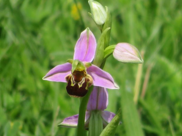 Ophrys abeille, Ophrys apifera, sur une pelouse de l’hippodrome d’Auteuil, sur la balade boucle verte du 16e.