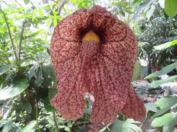 Aristoloche gigantea, en fleur dans une serre du jardin d’Auteuil, 16e.