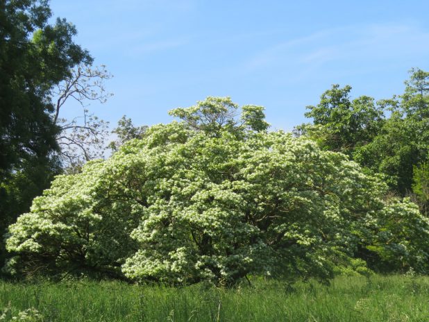 Chionanthus retusus, bel arbre asiatique, en fleurs à l’arboretum du Breuil, dans le bois de Vincennes, 12e.