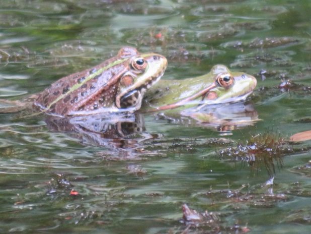 Amours des grenouilles dans la mare du jardin naturel, quartier de Charonne, 20e.
