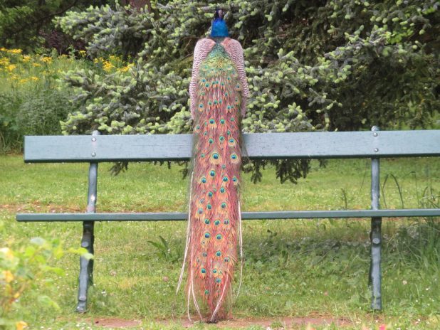 Paon à la queue cuivrée dans la partie XIXe siècle du parc de Bagatelle, 16e.