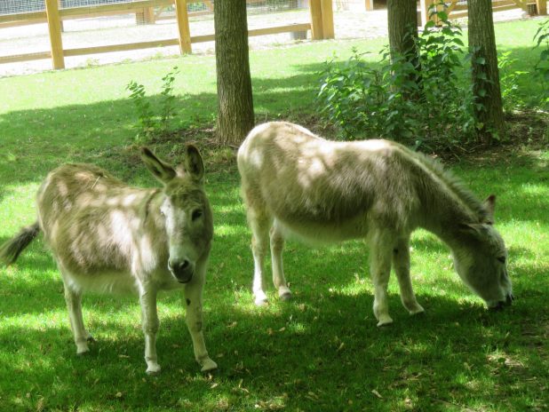 Jolis ânes dans la petite ferme du parc de la Villette, 19e.