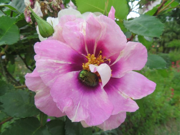 Cétoine dorée assoupie dans une » rose de Babylone ‘, sur la coulée verte René Dumont, 12e.