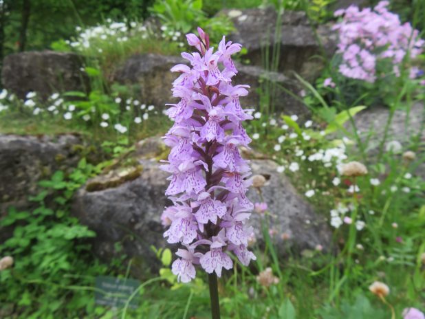 Orchis de Fuchs, Dactylorhiza fuchsii, dans le jardin alpin du jardin des plantes, 5e.