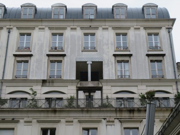 Bel immeuble inauguré en 1996 par l’architecte Charles Vandenhove, 1927-2019, depuis le square Jehan Rictus à Montmartre, 18e.