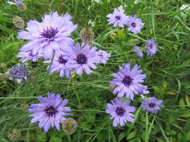 Jolis fleurs de cupidones dans le Jardin Maudy Piot-Jacomet, quartier de Plaisance, 14e.