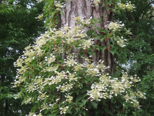 Schyzophragma hydrangeoïdes grimpant dans la pinède du parc floral, 12e.