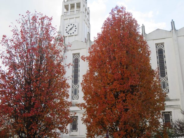 Embrasement des pommiers du Liban au pied de l’église st Jean Bosco, quartier de Charonne, 20e.