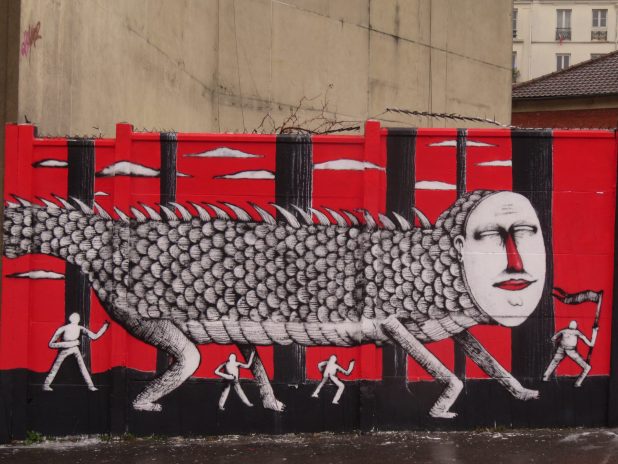 Belle fresque dans la rue des Pruniers, quartier de Ménilmontant, 20e.